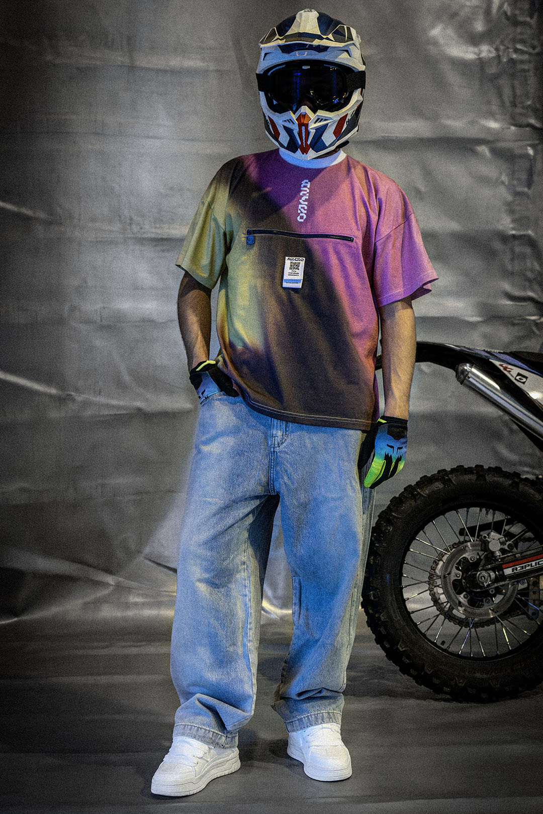 Oversized fit. 100% organic cotton. Front pocket and Azero prints on both front and back. 3D printed zipper.